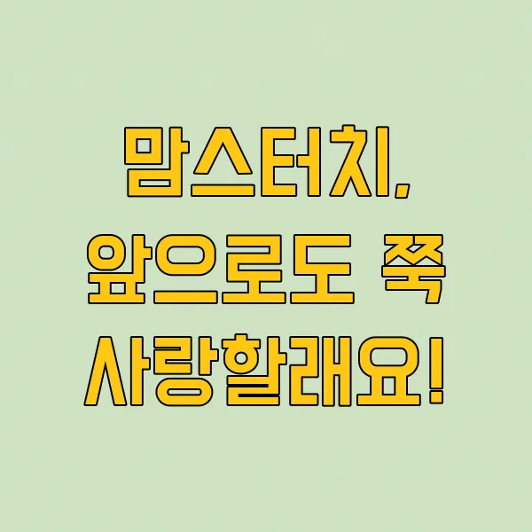 오늘 제가 알려드린 맘스터치 꿀팁들, 어떠셨나요? 이제 뭘 먹어야 할지 고민될 때, 조금 더 알차고 맛있게 맘스터치를 즐기실 수 있기를 바라요. 저도 앞으로도 계속해서 새로운 메뉴와 꿀조합을 찾아 여러분과 함께 공유할 테니, 기대 많이 해주세요! 맘스터치, 정말 사랑입니다! ❤️